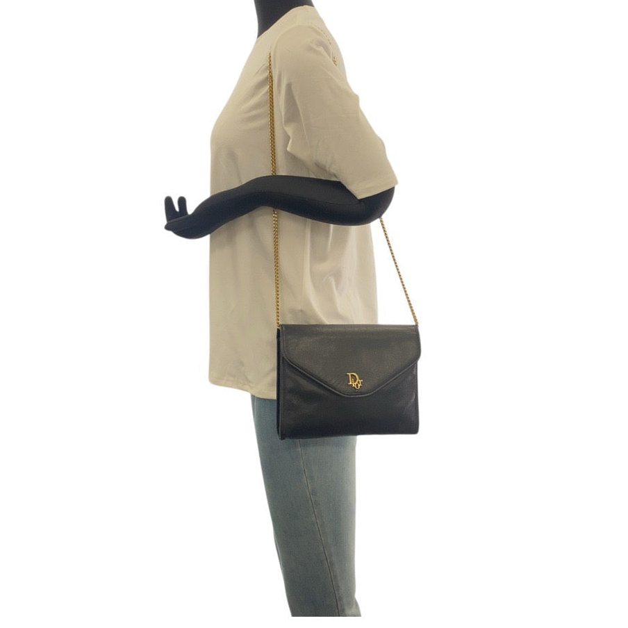 Christian Dior – Vintage Chain Shoulder Clutch – Black Leather with Gold-Tone hardware