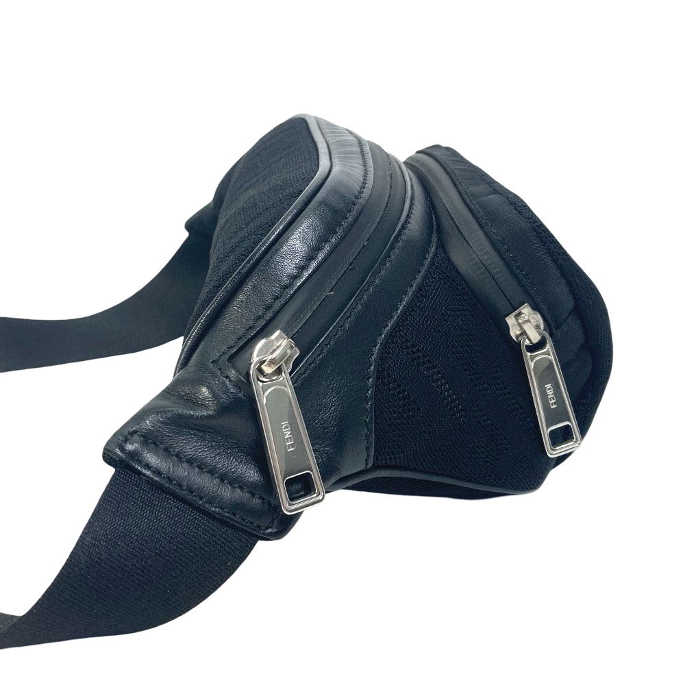 FENDI Zucca Mesh Sling Bag Black Polyamide & Leather Crossbody 100% Authentic ✨Excellent Pre-Owned