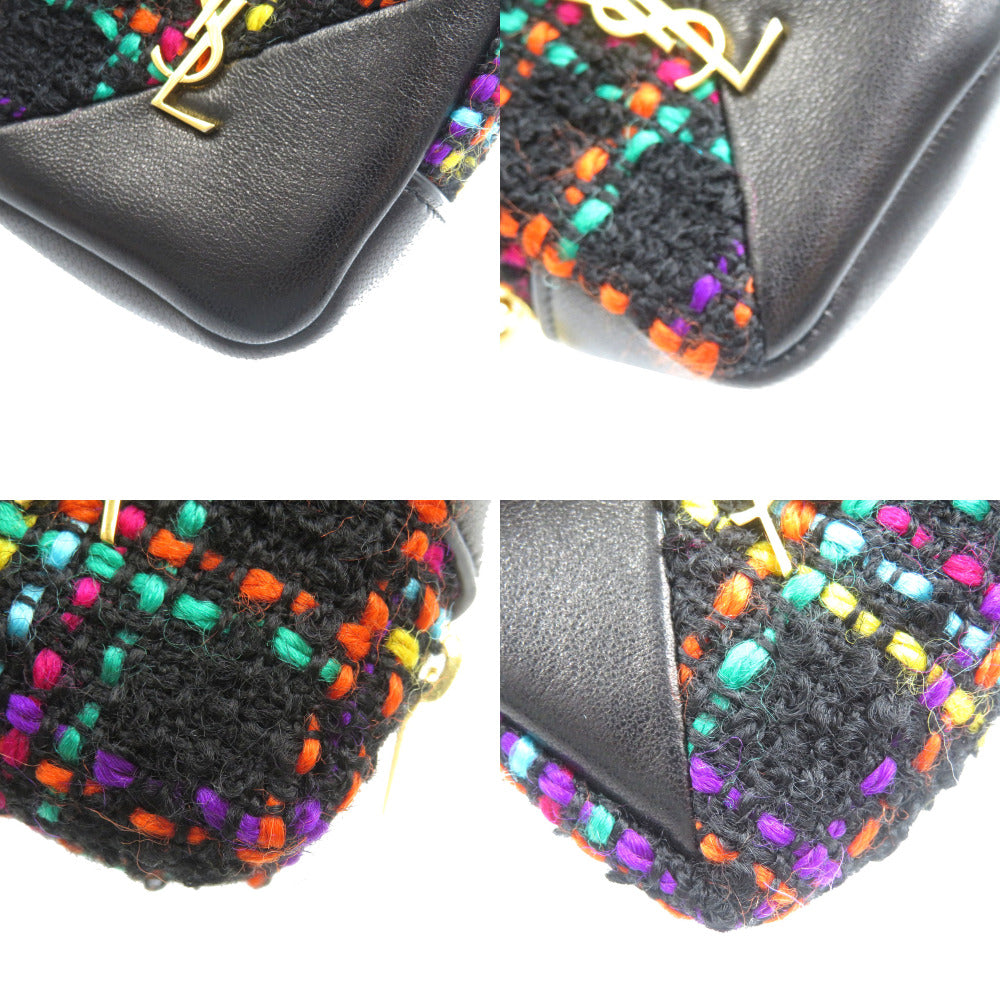SAINT LAURENT PARIS Coin case Tweed, Leather black preowned 100% Authentic