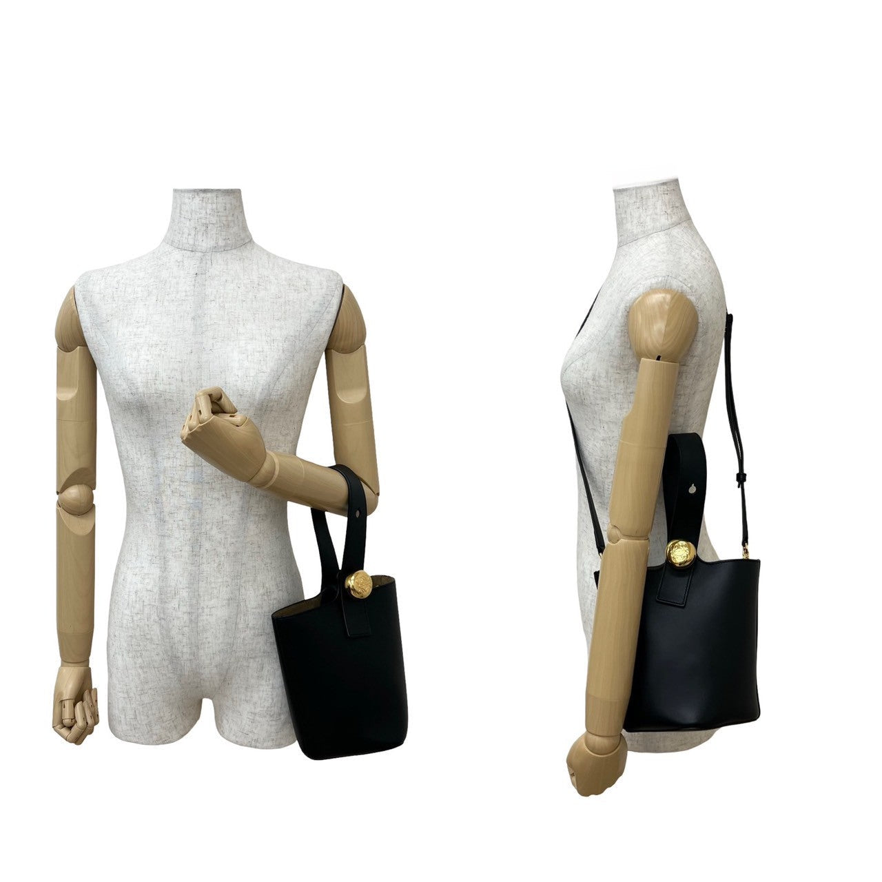 • Color/Material: Black leather with Anagram hardware